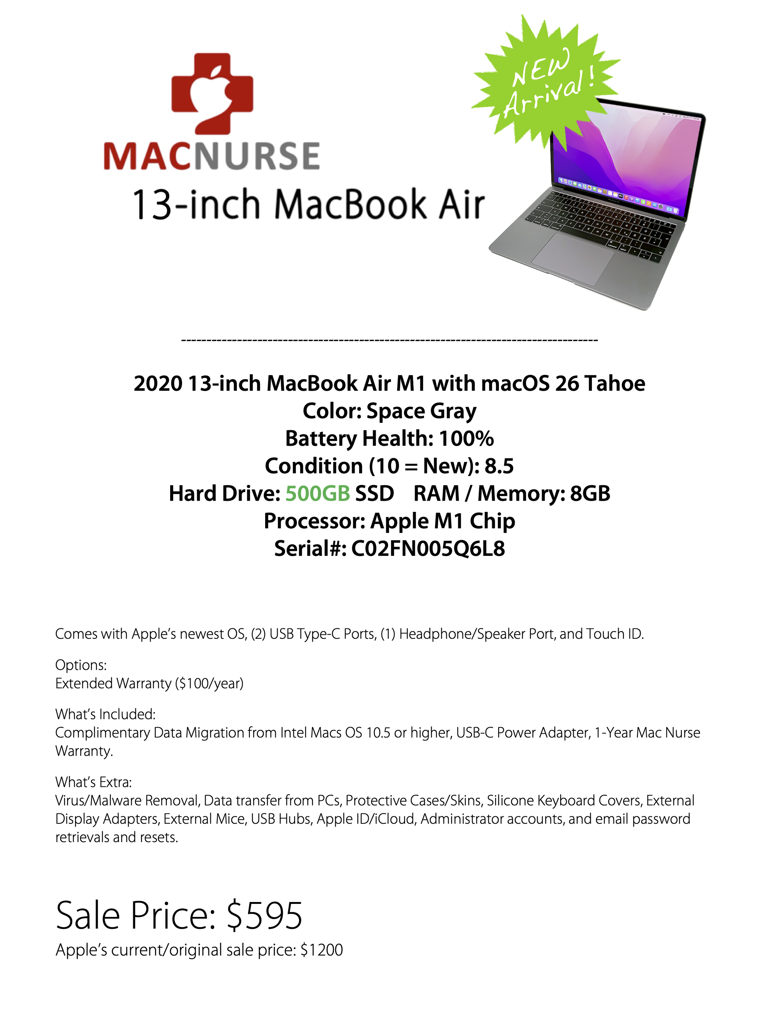 Every Mac® purchased from Mac Nurse comes with a 1-Year Mac Nurse Warranty and a complimentary 30-minute tech session to orient you to your new Mac and to set your computer up just the way you’d like it. Complimentary services include: Data transfer from your previous Mac®, advice, wisdom, patience, kindness, and always a bit of humor.